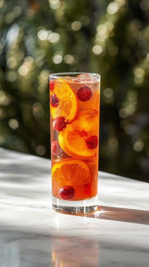 - Stir in orange slices, lemon slices, and cranberries. Let infuse for 5 minutes.