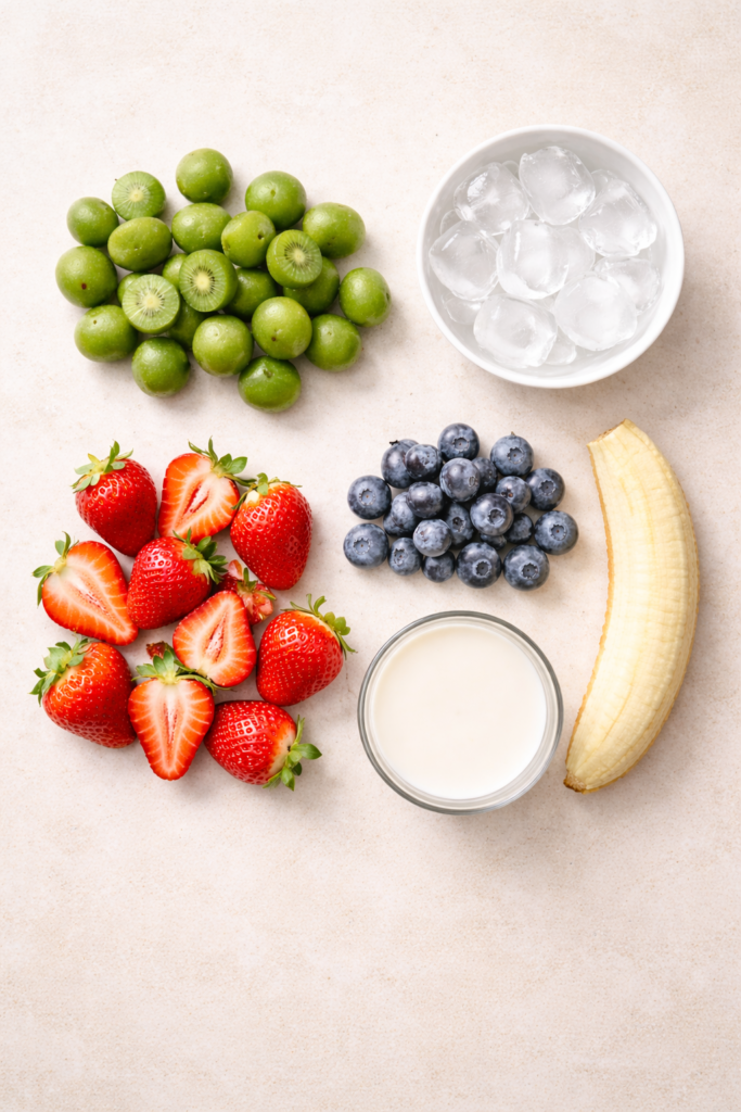 A bright, refreshing kiwi berry smoothie made with strawberries, blueberries, and almond milk. Naturally sweet, lightly tangy, and perfect for busy mornings, post-workout hydration, or a healthy afternoon refresh.