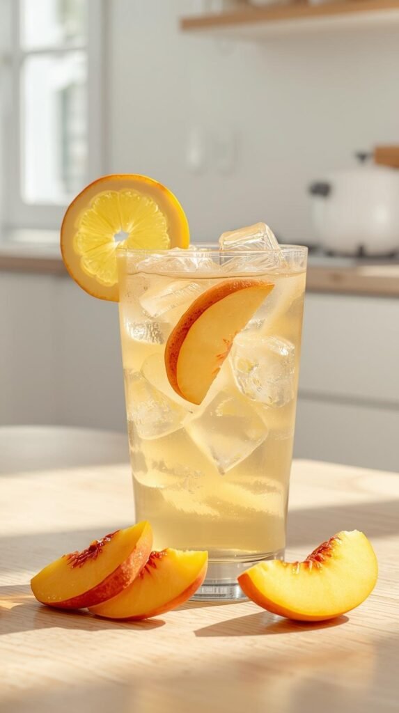 Green tea gives gentle energy, peach adds sweetness, and lemonade brings the tang. It’s balanced, bright, and super hydrating.