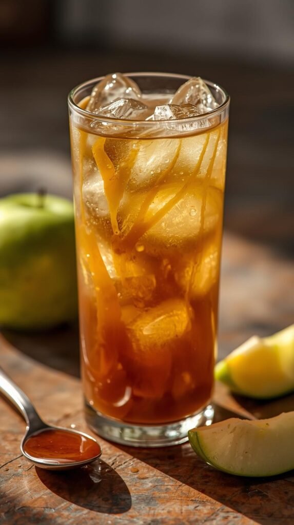Apple juice and caramel feel cozy, but served over ice, it becomes surprisingly refreshing.